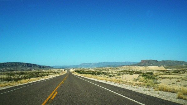 Das einfallende Sonnenlicht ist so grell, dass ich auch beim Fahren meine Augen mit Sonnenbrille schützen muss. Eben blockiert herabfallendes Geröll die Straße. Trotz Demage Weaver, einer Haftpflichtversicherung, hätte ich für Steinschlagschaden selbst aufkommen müssen. Ich darf mich auf den einsamen Highways, deren Asphaltbänder wie mit einem Lineal gezogen geradeaus bis zum Horizont führen, nicht zu Speedtests hinreißen lassen. „Don’t mess with Texas“, kann man da und dort lesen. Die Strafen für zu schnelles Fahren oder gar ein Fahren unter Alkoholeinfluss, kostet dich hier den Führerschein, eine saftige Geldstrafe obendrein und vielleicht eine Übernachtung in der Zelle einer Border control station. Trotzdem muss ich zugeben, dass ich manchmal verlockt bin mehr als die erlaubten 70 miles zu fahren. It’s a free country, isn’t it, and we are all mavericks, aren’t we? Light another cigarette, singt Jim Morrisson eben, lets forget. Ein versteckter Aufruf zum Drogenkonsum. Apropos Drogen. Ich überquere gerade den smuggler creek. Es ist die einsamste und malerischste Gegend, die man sich vorstellen kann, und gilt als Geheimtipp. Seit Stunden kaum Gegenverkehr. Die Straße gehört mir. Manchmal ein Biker, in dessen Lederhaut ich bei dieser Hitze nicht stecken will, viel öfter ein meterlanger, chromblitzender Truck, ein roter oder blauer Tupfer in der Landschaft, der auf mich zukommt, immer größer wird und dann im Seitenspiegel verschwindet. PS-starke Pickups mit angehängten Trailern. Ja, die Amrikaner sind ein ziemlich mobiles Volk. Nur noch wenige Meilen nach El Presidio, Welthauptstadt der Zwiebeln am Zusammenfluss von Rio Grande und Rio Conchos, einer nach dem mexikanischen Krieg mittlerweile zweigeteilten Stadt, Ojinaga mit Namen. Auch hier Umweltprobleme. Wasserknappheit. Grundwasserkontaminierung durch leichtfertig entsorgten radioaktiven Abfall.