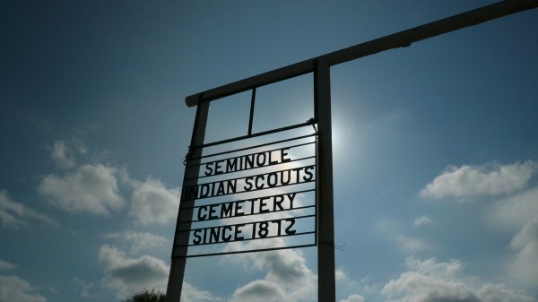 160 miles: Mesquitesträucher, Kakteen, Buschlandschaft, Windräder und die wenig einladenden Tore aus Schmiedeisen, die mit den Brandzeichen anzeigen, welchem royalty of beef die Ranch gehört. Vor Brackettville sehe ich ein Schild: Seminole Cementery. Ich weiß nicht, was ich mir vorgestellt habe, aber, was ich vorfinde, ist, wie sich herausstellt, ein Friedhof wie jeder andere. Kunstblumen statt Grabsteine, ein gepflegter Rasen, wenn Namen, dann ohne Geburts- und Sterbedatum, und das US-Sternenbanner natürlich. Die Gegend dürfte sich für Gefängnisse besonders gut eignen. Ein Detention-Center nach dem anderen. Am Wegrand Schilder, die davor warnen, Autostopper mitzunehmen. In diesem Dschungel aus Mesquite kämen Ausbrecher ohnehin nicht weit.
