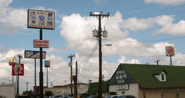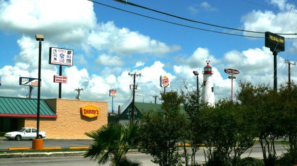 Die Einfahrt nach San Antonio wie in jede Stadt alptraumhaft. Ohne Navi, das mich zu einem Motel 6 in der Rittimon Rd. lotst, könnte ich nur auf gut Glück nach diesen billigen, aber komfortablen Unterkünften Ausschau halten. Keine Chance anzuhalten und jemanden zu fragen. Im Fließverkehr halte ich auf die Innenstadt zu, deren Skyline sich wie eine Kulisse über den Highways auftürmt. Von weitem wie eine Landmark the tower life building. „Right turn, left turn, 5 miles, 4 miles.“ Ein Zeichendschungel und Krieg um Aufmerksamkeit. Je höher, desto sichtbarer: Exxon, Dennys, Mc Donald, Holiday Inn, H-E-B …. Endlich. Das Motel 6 direkt an der Interstate. Das verspricht eine ruhige Nacht zu werden.