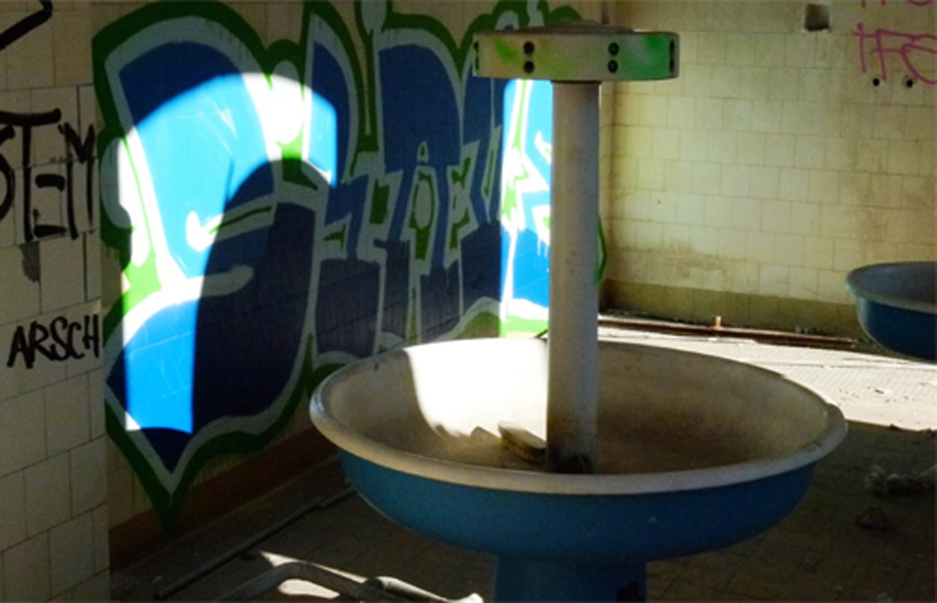 Industrieruinen sind Bühnen für GraffitikünstlerInnen, die mit ihrem hintergründigem Humor mit Licht, Farben und Gegebenheiten des Ortes spielen. So führt ein Pfeil mit dem Hinweis FRITZEL in den Keller. Auf einer Kamintür steht „Open it!“, einer Aufforderung, der nachgegangen wurde. Das zeigt ein Hakerl mit „Done“.
