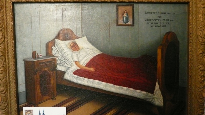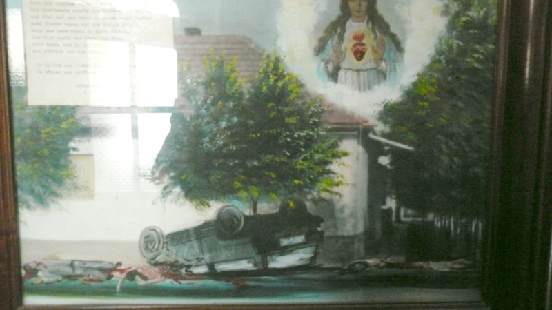 Neben klassischen Wegkreuzen wie dem Abgebildeten, das ich auf dem Weg zum Hausberg der Bregenzer, dem Pfänder, gefunden habe, gibt es auch Votivtafeln, die mit naiver Malerei eine Nahtoderfahrung darstellen und kurzen Texten, die auf Errettung in höchster Not meistens durch Gelübde hinweisen.
