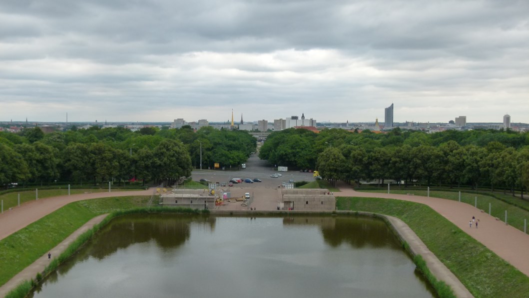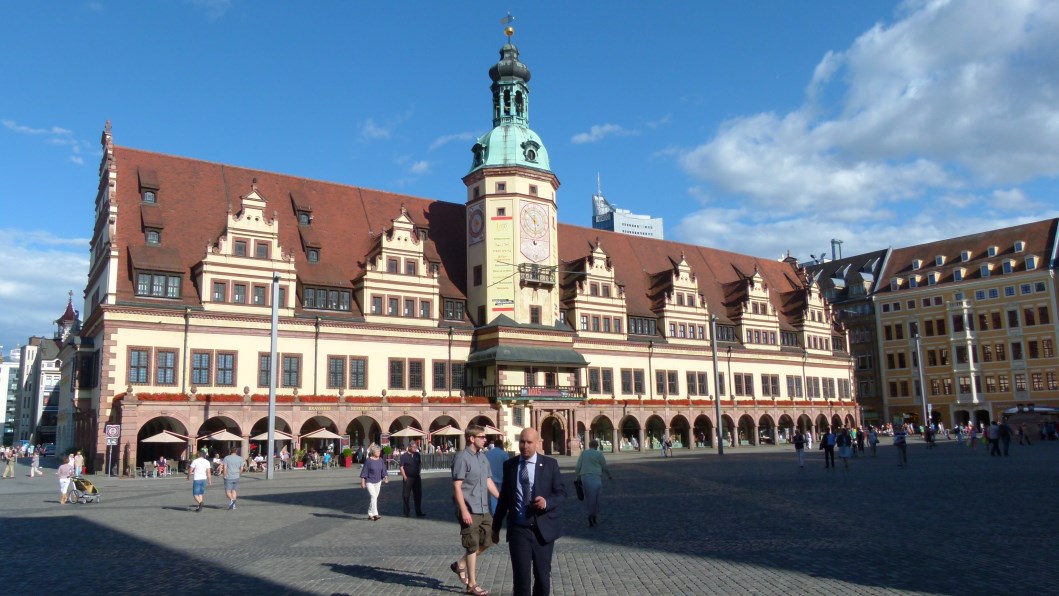 Was sofort auffiel, waren die vielen raumgreifenden Plätze, die wohl noch vom Bombenhagel der Alliierten herrühren, welcher die Innenstadt und vor allem das Graphische Viertel zerstört hat, das Leipzig als city of books weltweit berühmt gemacht hatte. In den Jahren des Realen Sozialismus mit intensivem Braunkohleabbau und Zerstörung der Auwälder galt Leipzig lange Zeit als umweltbelastetste Stadt Europas mit abgastrübem Himmel. Die Flüsse waren biologisch tot. Der saure Regen nagte an der Sandsteinarchitektur. Nach der Wende wurden die Flussläufe wieder frei gelegt und innerstädtische Brachflächen neu aufgeforstet. Heute ist Leipzig wieder eine lebenswerte Stadt mit großflächigem Erholungsraum, der viele, vor allem junge Menschen wegen Arbeit bei neuen großen Arbeitgebern anzieht. Mit einem jährlichen Anstieg von etwa 10.000 Menschen ist Leipzig mittlerweile die am stärksten wachsende Großstadt Deutschlands, lese ich auf der städtischen Website. Viele fliehen Berlin schon aus Mietpreisgründen. Damit bin ich auch schon wieder in der Gegenwart.