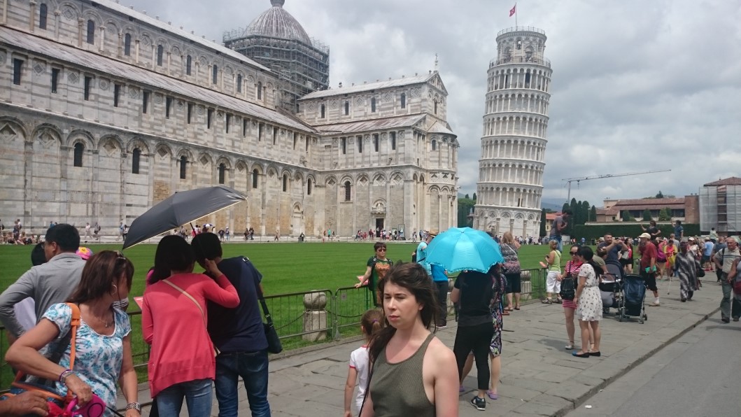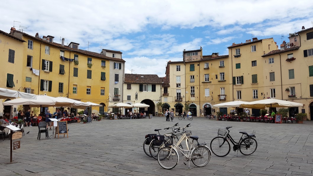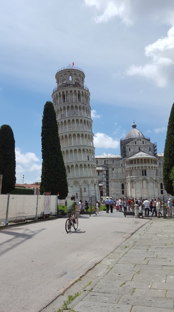 Von Pescia, der Blumenstadt, sind die ehemals verfeindeten Städte Lucca und Pisa schnell erreicht; von dort ist es nicht mehr weit, um Meerluft zu schnuppern. Während Lucca – noch immer von einem imposanten Wall umgeben – seinen Aufstieg und Reichtum der Seide verdankte, war Pisa lange eine Seemacht. Noch heute kann der Arno von größeren Schiffen bis in die Stadt hinein befahren werden. In Pisa konnten wir uns davon überzeugen, dass der Campanile, von dem aus einst Galileo seine Fallgesetze ableitete, noch immer geradezu beängstigend schief steht; wären nicht die vielen Touristen, die ihn mit Selfies abbilden, auf denen sie ihn mit ihren Händen abstützen, müsste er schon längst eingestürzt sein. Da die Stadt und somit Dom, Camposanto und Campanile – ein Rausch aus Marmor auf dem Platz der Wunder, wie er nicht ohne Grund getauft wurde – auf Schwemmlandboden errichtet worden war, darf kein Grundwasser mehr entnommen und kein Hochhaus gebaut werden, um die Gefahr eines Einsturzes des am meisten abgelichteten Glockenturmes der Welt für die nächsten hundert Jahre zu bannen.