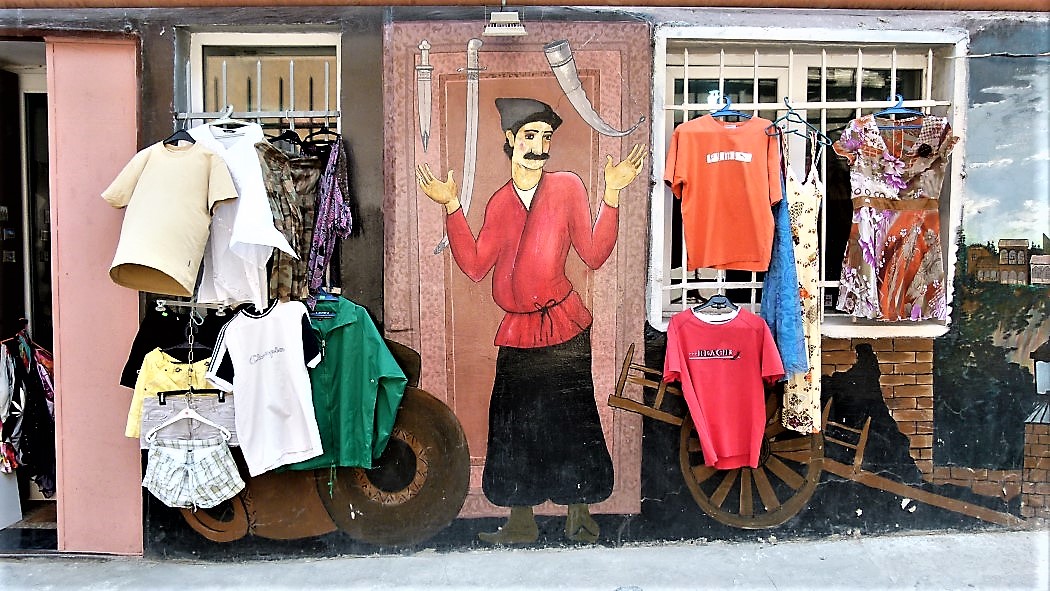 Auf vielen unserer Wege in Tiflis lerne ich die Verspieltheit, Kreativität und den Schalk seiner Bewohner vor allem in der privaten Werbung für feilgebotene Waren am Straßenrand, in den Auslagen, Graffitis oder Skulpturen im öffentlichen Raum kennen. Dazu gehört auch der Uhrenturm, in welchem das Marionettentheater untergebracht ist.