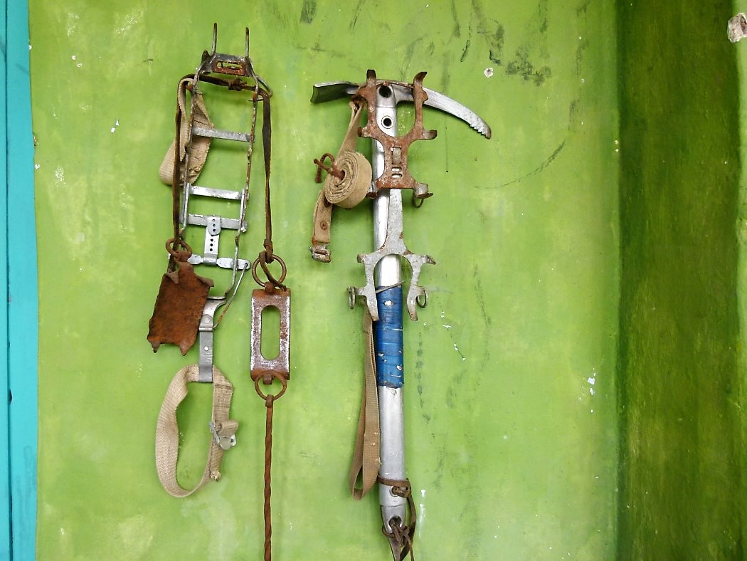 Um mehr über die Geschichte des Ortes zu erfahren, besuchen wir zwei ethnografische Museen, von denen nur eines den Namen verdient. Das erste ist eine kuriose Sammlung von ausgestopften Gämsen (oder sind es Steinböcke?) mit gebrochenen Augen, ein Zeitungsausschnitt mit Fotos und einem Artikel über ihre Eltern, verrostete Steigeisen und Pickel, ein Brett mit eingelegten Steinen, auf dem das Getreide gedroschen wurde. Die Dame lässt es sich nicht nehmen, uns auch noch ein Ständchen zu singen, indem sie sich auf den letzten noch verbliebenen Tasten einer uralten, verstimmten Ziehharmonika begleitet. Dafür will sie von uns 10 Lari. Sie hätte gerne noch ein Lied zum Besten gegeben, aber bei allem Verständnis für lokale Folklore wollen wir uns das nicht mehr anhören.