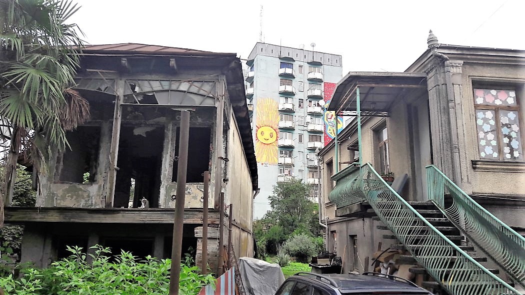 In der Unterkunft war an Schlaf nicht zu denken – das angrenzende Zimmer hatte vermutlich eine Wand aus Karton; zuerst dachten wir an einen heftigen Streit zwischen einem russisch sprechenden Ehepaar. Erst als Musik einsetzte, wussten wir, dass es ein russischer Kanal war, dessen Soaps sich unser Nachbar bis in die Morgenstunden in voller Lautstärke reinzog. Unser wütendes Hämmern half nichts. Nicht wirklich ausgeruht also stehen wir nach kurzem Frühstück wieder am Busbahnhof. Wir wollen der Hitze entkommen und ins alpine Svanetien, nach Mestia, um von dort aus das eigentliche Ziel unserer Reise zu erreichen. Wie die „Wolkenkratzer“ der Yaroswilcas auf 5000 m im fernen Peru, sind es die fast zur gleichen Zeit entstandenen Wehrtürme der Svanen, die mich/uns (meiner Lebensgefährtin hatten es mehr die Art-Deco Villen in Tilfis angetan) nach Georgien gelockt haben.