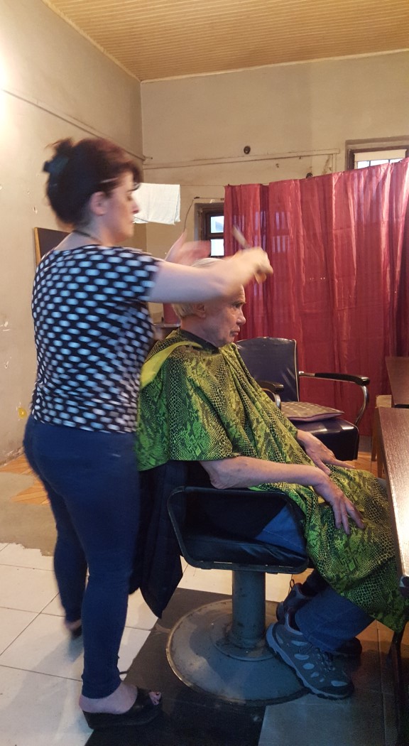 Am Abend suchen wir ein Lokal zum Essen, finden aber zuerst nur Friseure. Also lass ich mir die Haare schneiden. Dazu braucht es nicht vieler Worte, aber Vertrauen, wenn nicht sogar Mut. Der wurde nicht oft belohnt. Im Gegenteil. Nach Haarschnitten im Ausland musste ich oft monatelang mit einer Kopfbedeckung auf die Straße, um das Ergebnis dieser Dienstleistung zu verbergen. Ich deute mit dem Abstand zwischen zwei Fingern an, wie viel meiner Haarpracht der Schere zum Opfer fallen darf, und hoffe, dass die angegebene Länge eingehalten wird.