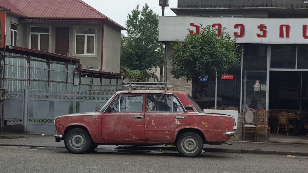 Am nächsten Morgen, ausgeruht und verwöhnt durch ein von der Witwe zubereitetes Frühstück mit Chachapuri, Joghurt, Brot, Spiegeleiern und würzigem Kaffee, brechen wir zum Busbahnhof auf und hoffen, jemanden zu finden, der uns nach Adishi bringt, das mit seinen 2.200 m mit Ushguli zu den zwei höchstgelegenen und noch immer bewohnten Dörfern Europas am Fuß der Gletscher des Hohen Kaukasus in Svanetien gehört.